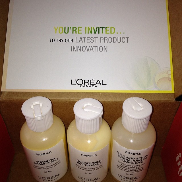 I recently received my first VoxBox from Influenster and I am kind of excited about it! Influenster sends out products for regular folk to try out and share their results via social media. This sweet little package arrived and inside I found a sample bottle of shampoo, conditioner and split-end serum. The first thing I noticed was the smell. Oh my, it was heavenly. The kind of smell that makes you prolong your shower so you can keep on breathing deep. 🙂 The idea behind the VoxBox this time was to try out the samples and then try to guess which L’Oreal Canada product this really was. We will find out soon exactly what the #MysteryBrand is when we receive full size bottles of the product!!